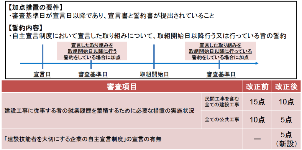 「建設技能者を大切にする企業の自主宣言制度」の宣言状況について加点項目として追加(5点)